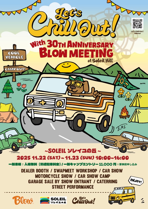 11/22(土)、23(日) 横須賀のソレイユの丘にて開催されるレッツチルアウトに出店いたします🚙⛺🌈
